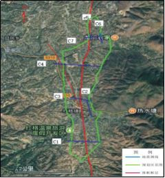 Gambar 1: Diagram skematik dari ruang lingkup Distrik Perencanaan Hongge dan garis survei seismik yang diusulkan